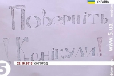 У мерії запевняють, рішення ухвалили за результатами соцопитування, яке засвідчило, що 60-т відсотків батьків підтримують перенесення осінніх канікул. У такий спосіб чиновники планують заощадити на комунальних платежах, бо зараз через теплу погоду школи можна не опалювати. Нагадаємо, 28 жовтня в Ужгороді відбувся мітинг школярів, які через соцмережі організували масштабну акцію. Підлітки разом із батьками намагалися відстояти своє право на відпочинок восени. Через цей протест міський голова Віктор Погорєлов подав заяву до міліції, а батьки написали колективне звернення до прокуратури.