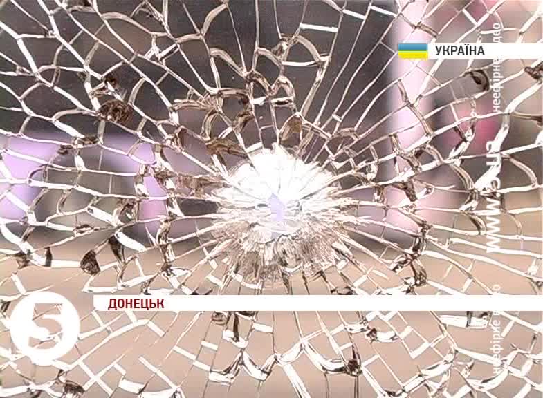 Світлана Аршба, заступник начальника АТП Донецька з експлуатації: «У нас разбиты три стекла. Вот в этом месте стояла коляска с ребенком. Коляска была повернута лицом к стеклу. Мама просто успела дернуть коляску к двери. Естественно, пассажиры были все в шоковом состоянии. Водитель принял все меры для предотвращения паники».