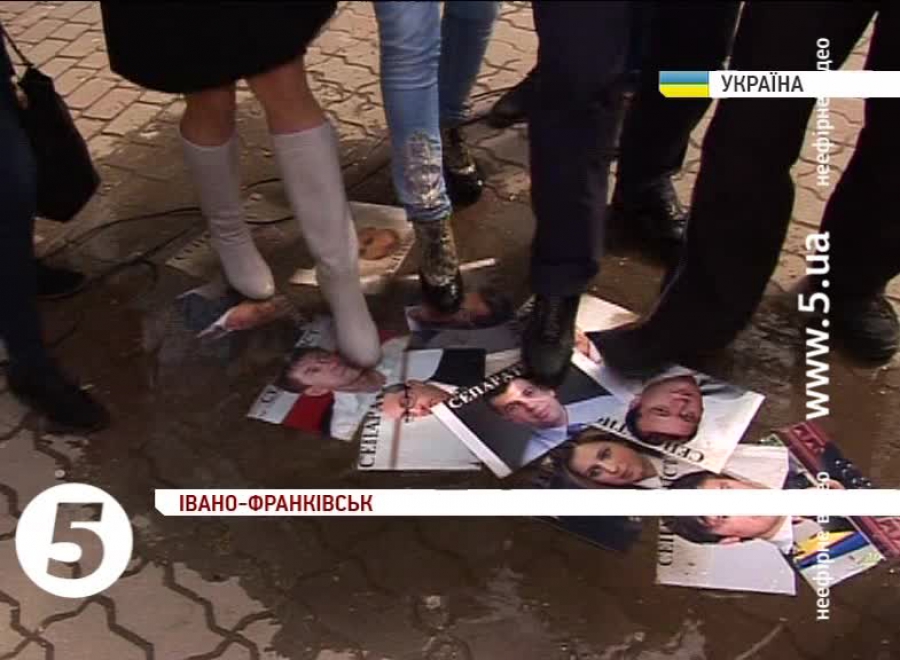 У центрі міста активісти розвісили фото тих, хто на їхню думку, причетний до сепаратистського руху. Це світлини Михайла Добкіна, Олега Царьова, Сергія Аксьонова, Геннадія Кернеса та Петра Симоненка.