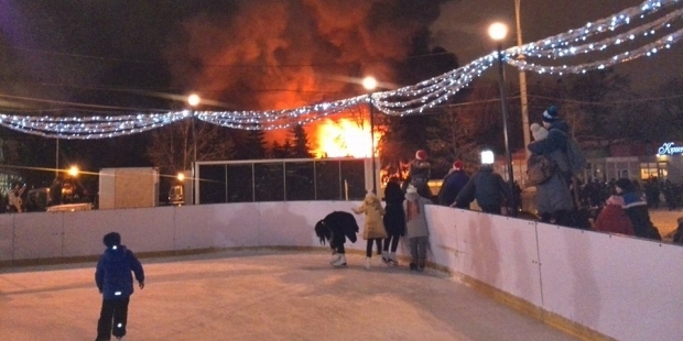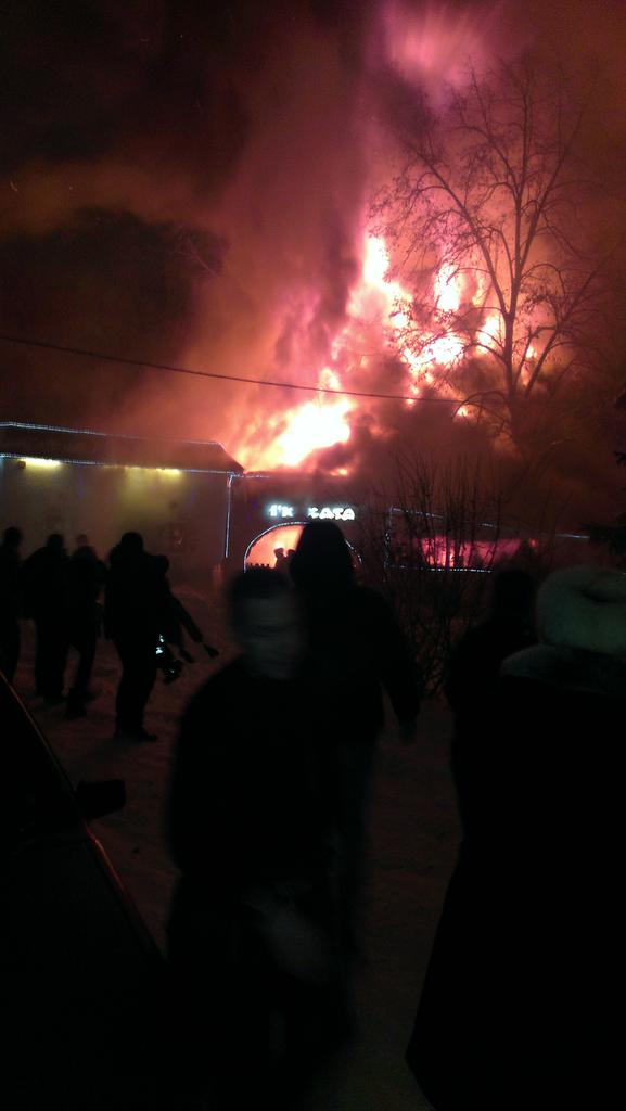 На місці інциденту працюють рятувальники і міліція. Повідомляється, що загальна площа пожежі становить близько 200 кв м.