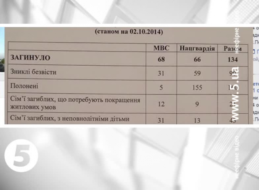 Згідно з ним, у полон потрапили понад півтори сотні армійців. Зниклих безвісти - 90. А протезування потребують 14. Усі ці цифри стосуються винятково бійців Нацгвардії та підрозділів МВС.