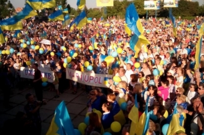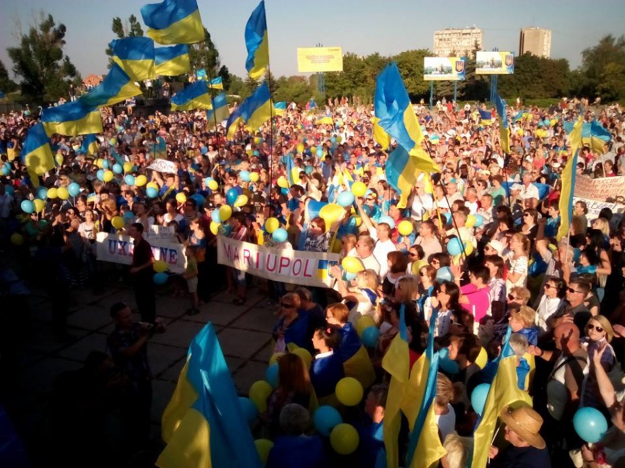На мітингу звучав гімн України, який присутні співали, приклавши руку до серця. Після цього маріупольці вшанували пам'ять загиблих українських військових хвилиною мовчання.