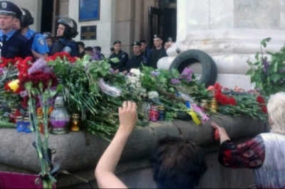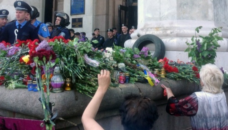 У місті приспущені національні стяги. Ну вулицях малолюдно. Натомість біля церков збираються сотні одеситів. Довкола будівлі, де сталася трагедія, в якій загинули більше трьох десятків людей, - гори квітів. На Куликовому полі тим часом присутні десятки міліціонерів.