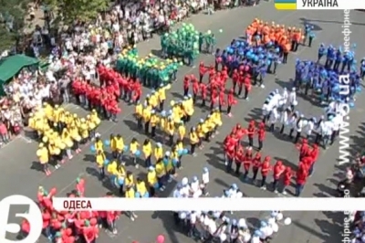 Першими зі святом привітали Одесу школярі. 600 старшокласників вишикувалися у величезний напис «З днем народження, Одесо». На кожну літеру - знадобилося по три десятки підлітків. Потому, під гімн міста, вони випустили у небо різнокольорові повітряні кульки. Пізніше - у міському саду відбудеться фестиваль живих скульптур, а на Дерибасівській розпочнеться ярмарок одеської національної кухні - про все це ви дізнаєтеся з наступних випусків "5 каналу".