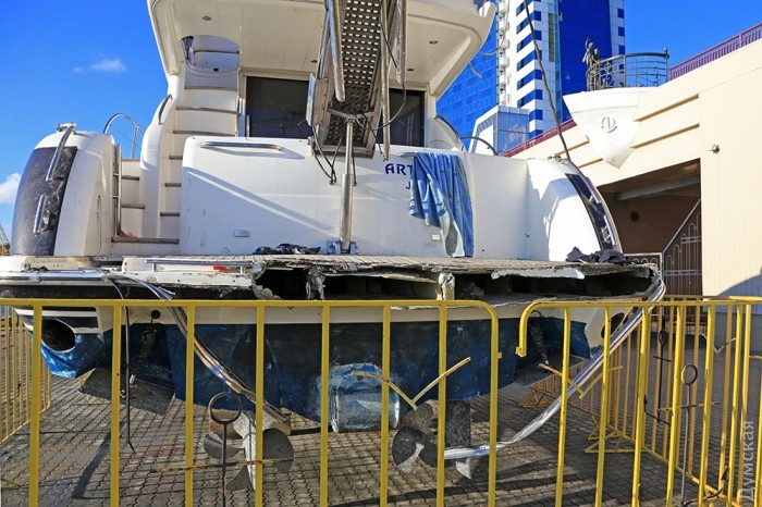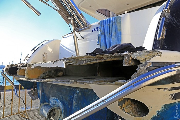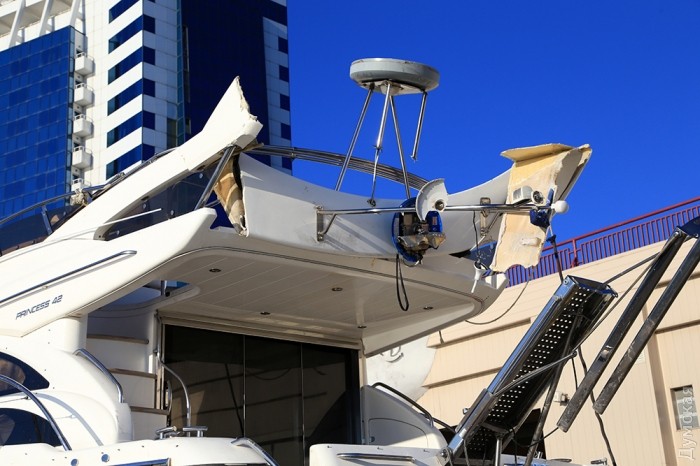 Крім того, на верхній частині надбудови помітні сліди стихії. Очевидці події стверджують, що у катастрофі "Артеміди" винен капітан, який неправильно пришвартував її біля стінки яхт-клубу. Крім того, під час шторму на борту не було персоналу, що неприпустимо в таких випадках.