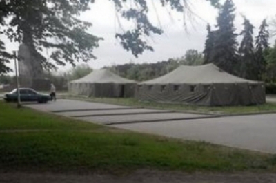 Для працівників харківської міліції, що несуть цілодобову службу на площі Свободи з метою недопущення будь-яких правопорушень, спроб пошкоджень пам’ятників, будівель та інших протиправних дій з боку агресивно налаштованих громадян, встановлені два спеціально обладнані армійські намети.
