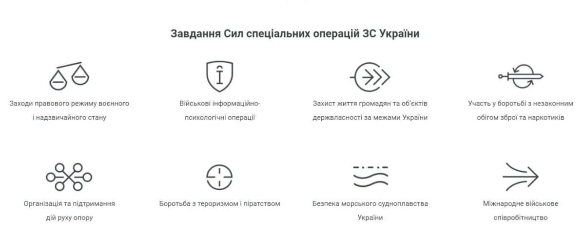 ССО заснували 2016 року. Туди входять частини спеціального призначення і підрозділи інформаційно-психологічних спеціальних операцій.