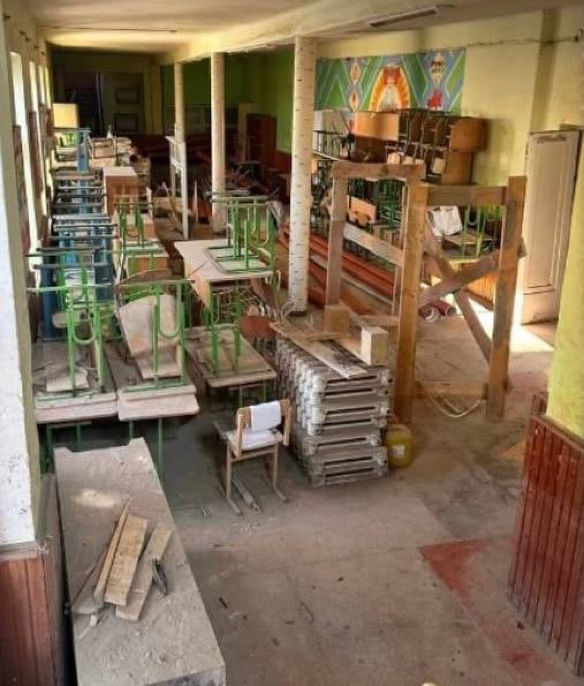 - Навчання відбувається почергово через брак приміщень, з замурованими вікнами, що не пов’язано з воєнним станом.