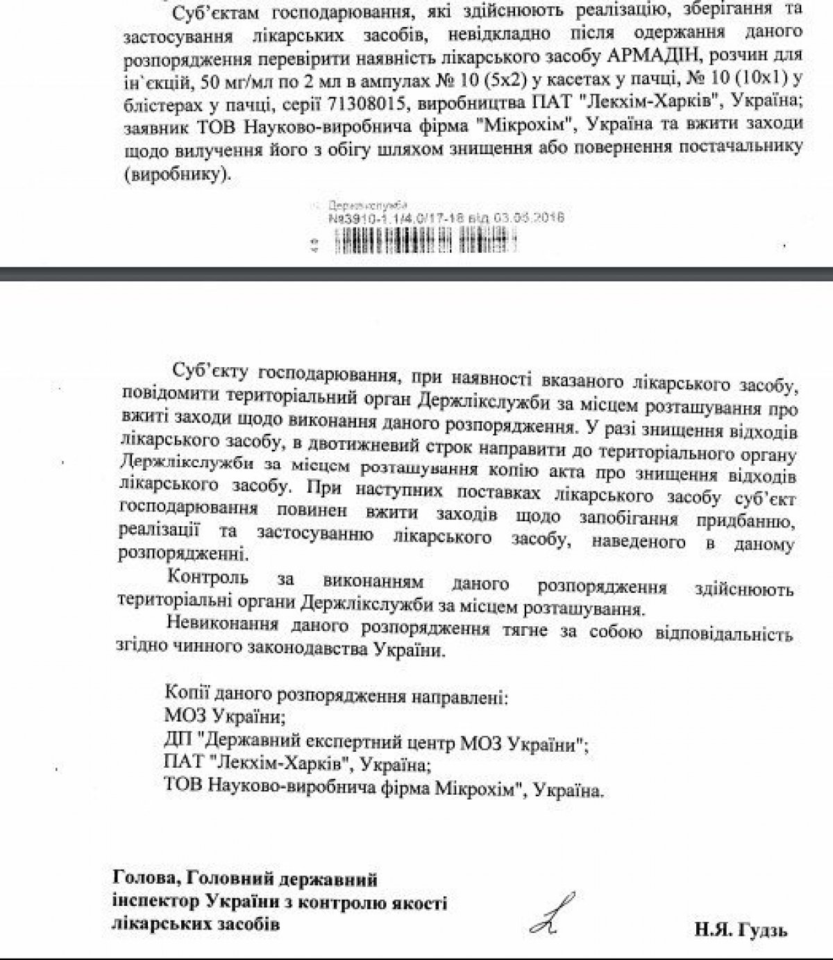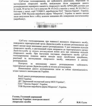 "На підставі надходження від Державної служби з лікарських засобів та контролю за наркотиками у Тернопільській області повідомлення про летальний випадок при застосуванні серії 282Р6016А лікарського засобу (імунобіологічного препарату) вакцина від дифтерії, правця та кашлюка з цільноклітинним кашлюковим компонентом... тимчасово забороняю реалізацію та застосування лікарського засобу", - йдеться у розпорядженні Держлікслужби за підписом голови установи Наталії Гудзь.