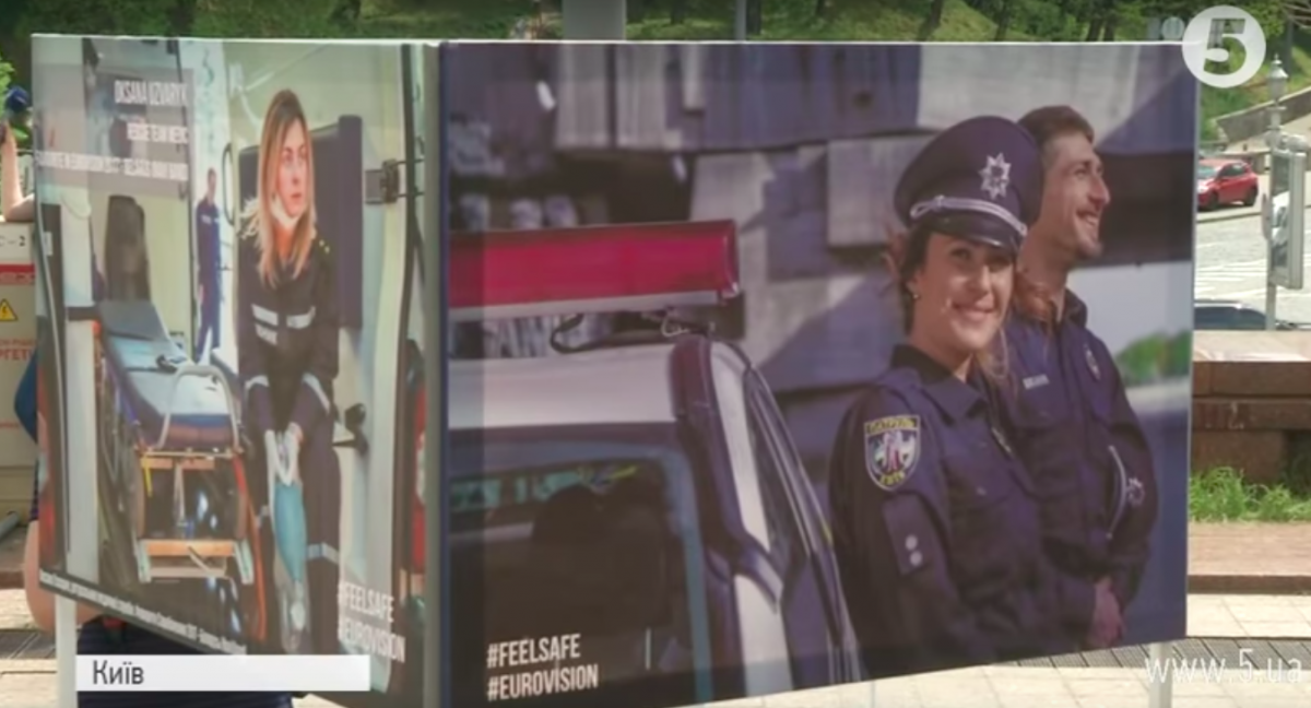 Це 19 світлин, героями яких стали поліцейські, пожежники, медики, рятувальники, кінологи та навіть тварини – патрульні коні і собака-рятувальник. Триватиме виставка тиждень. Над проектом двоє фотографів працювали близько тижня щоб показати, хто саме убезпечує гостей Євробачення. Під час пісенного конкурсу громадський порядок у столиці пильнуватимуть 10 тисяч правоохоронців.