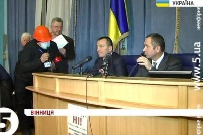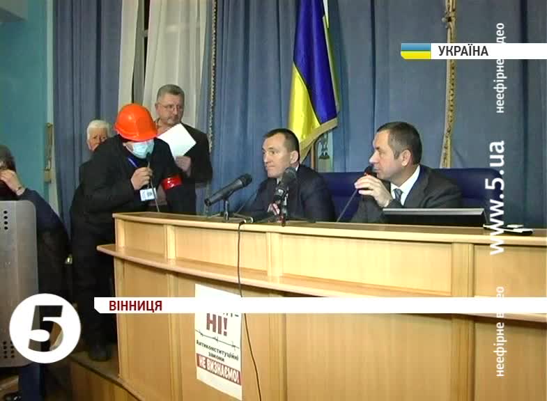 Активіст: «Що було прочитано і за що було проголосовано. Зачитую: «Забезпечити роботу Народної ради Вінницької області в приміщенні за адресою вул. Соборна, 70 в м. Вінниці шляхом надання…»