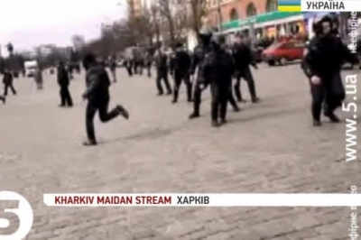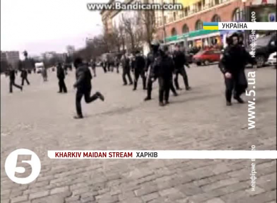Близько 13-ї години сепаратисти рушили від будівлі ОДА на людей, які стояли з іншого боку вулиці з українськими прапорами. Натовп із георгіївськими стрічками, озброєний палицями металевими прутами, камінням та скляними пляшками з сумішшю, накинувся на євромайданівців. Розпочалася бійка. Міліція спочатку спробувала створити кордон, але майже одразу відступила. Билися недовго. Постраждалих забрала "швидка". Міліція затримала одного з учасників сутички – 31-річного мешканця Харкова.