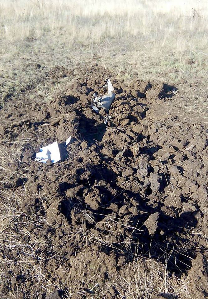 Місце падіння одного із них вдалося сфотографувати представникам української сторони Спільного центру з контролю та координації питань припинення вогню. Решта снарядів розірвалися у важкодоступних місцях, або ж на щільно замінованій території. Фотодокази вже передані спостерігачам місії ОБСЄ.