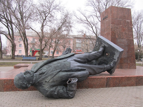 Першого ввечері у вівторок знесли у центрі Бердянська. За словами очевидців, невідомі у камуфляжні обв'язали "вождя пролетаріату" мотузками і скинули з постаменту.
