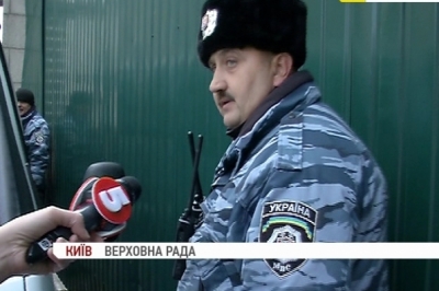 У спецпризначенців «Беркуту» тепер нова місія – охороняти Верховну Раду за периметром. Вони перебувають у автобусах біля Верховної Ради. А заразом охороняють і мітинг Партії регіонів, що поруч. Що стосується керівництва «Беркуту» – то воно в мікроавтбусах, що біля входу в парламент.