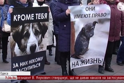 В Одесі захисники тварин пікетували мерію. Близько сотні людей вимагали побудувати притулки та центри стерилізації для безпритульних тварин, передає "5 канал".