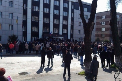 Нагадаємо, кількасот проросійсько налаштованих активістів учора намагалися штурмувати прокуратуру Маріуполя. З триколорами у руках, в масках і з битами мітингарі вимагали зустрічі з прокурором міста, щоби той відпустив на свободу самопроголошеного міського голову Дмитра Кузьменка. СБУ його затримала і доправила у слідчий ізолятор у Києві.