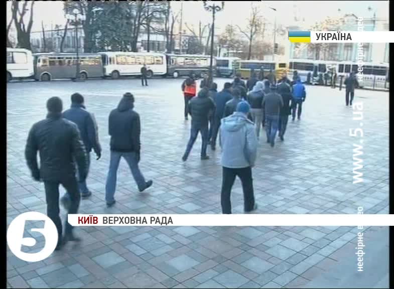 За його словами, усі інші також є співробітниками МВС. Чоловіки спортивної статури заявили, що виконують службове завдання, тож мету свого перебування поблизу будівлі парламенту – не можуть розголошувати. Утім, наголосили – вони мають завадити провокаціям.