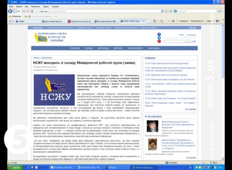 Медіа-організації обурені численними фактами насильства з боку правоохоронців. За чотири дні вони зафіксували жорстоке побиття понад 40 українських та закордонних медійників. Більшість із них постраждали від агресії з боку працівників спецпідрозділу «Беркут». Представники ЗМІ наголосили на неефективності діяльності робочої групи при президентові, яка «остаточно перетворилася на майданчик для окозамилювання та піару влади». Журналісти також наголошують, що протягом всієї каденції Януковича стан свободи слова в Україні погіршувався, а медіа-простір зачищався від незалежної інформації. Діалог із владою представники ЗМІ обіцяють відновити лише тоді, коли буде покарано винних у злочинах проти журналістів, а влада на практиці доведе відданість європейським цінностям.