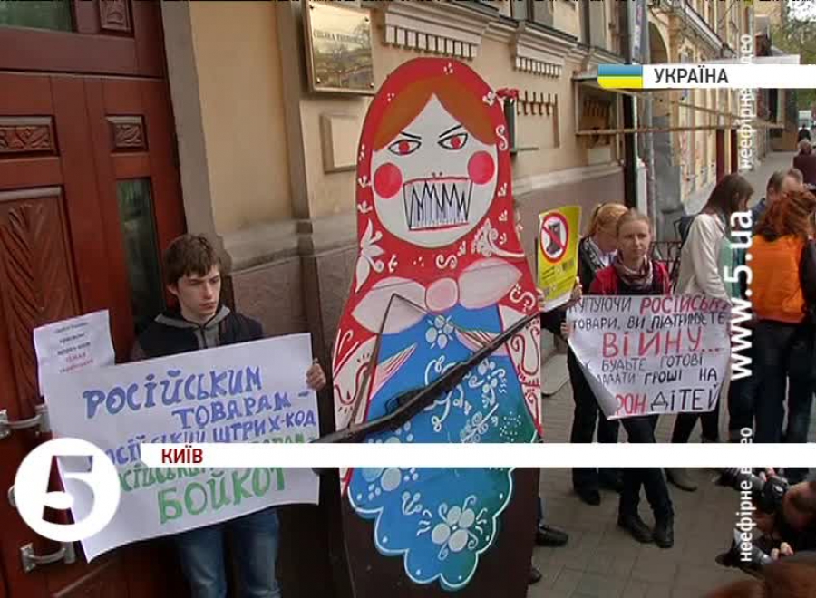 Активісти закликали маркувальників не підробляти штрих-коди і не ставити на російські товари український код. Зубату матрьошку принесли з собою, як символ російського агресора. Через бойкот товарів із Російської федерації на деяких упаковках почали міняти російські коди з першими цифрами 460 на українські – 482. Таке маркування незаконне і вводить в оману покупців. Утім, у компанії повідомили, що маркують лише товари українського виробництва.
