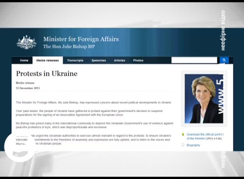У повідомленні, розміщеному на сайті відомства, йдеться про недопустимість застосування сили проти мирних мітингувальників. Бішоп закликала українську владу виявити максимальну стриманість і виконувати міжнародні зобов'язання щодо свободи зібрань і слова.