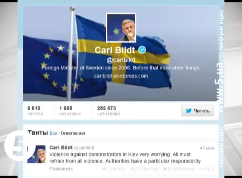 Про це він написав у своїй сторінці у Твіттері. Коментуючи останні події в Україні, політик закликав утриматися від насильства усі сторони протистояння. Утім наголосив: влада несе особливу відповідальність.