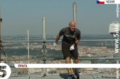 Петр Бенеш, рекордсмен: "Щоби встановити цей рекорд, я тренувався протягом двох місяців. Майже щодня вистрибував на уніциклі на сходи заввишки у тисячу і один щабель. Зрештою, мені все вдалося і я почуваюся задоволеним".