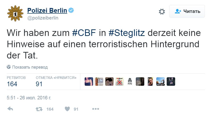 Зауважимо, поліція Берліна вважає, що стрілок у місцевій клініці діяв не з терористичних мотивів.