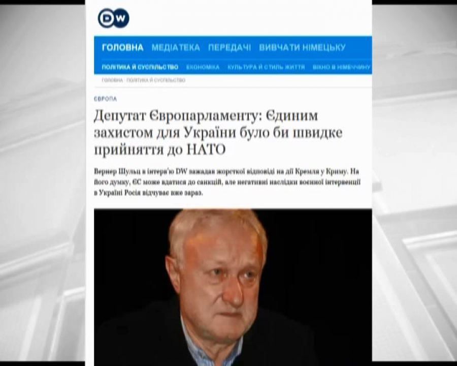Депутат розкритикував дії Кремля і зазначив, що більш реалістичний спосіб зупинити російську інтервенцію до Криму - це не перемови, а запровадження низки санкцій проти Росії. Йдеться про замороження перемовин про партнерство та співпрацю, блокування планів щодо безвізового режиму для росіян, обмеження на в’їзд до ЄС низці російських можновладців. Вступ же України до НАТО - убезпечив би її від подальшої агресії. Між тим НАТО та ЄС почали зустріч на рівні комітетів, щоби обговорити українські події. Напередодні ж - генсек Альянсу Расмуссен заявив, що через дії Росії в Криму НАТО повністю перегляне відносини з Москвою.
