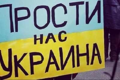 Український гімн співали росіяни на вулиці Маховій. Перехожі знімали процес на мобільні телефони і підтримували співаків.