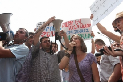 "В черговий раз, ігноруючи волю свого народу, сьогодні Серж Саргсян поставив свій підпис під документом (про приєднання Вірменії до ЄАЕС. - ЄвроПравда)", - заявив на мітингу керівник опозиційної партії "Спадщина" Раффі Ованнісян.