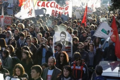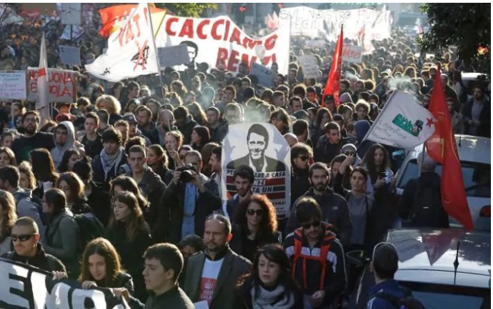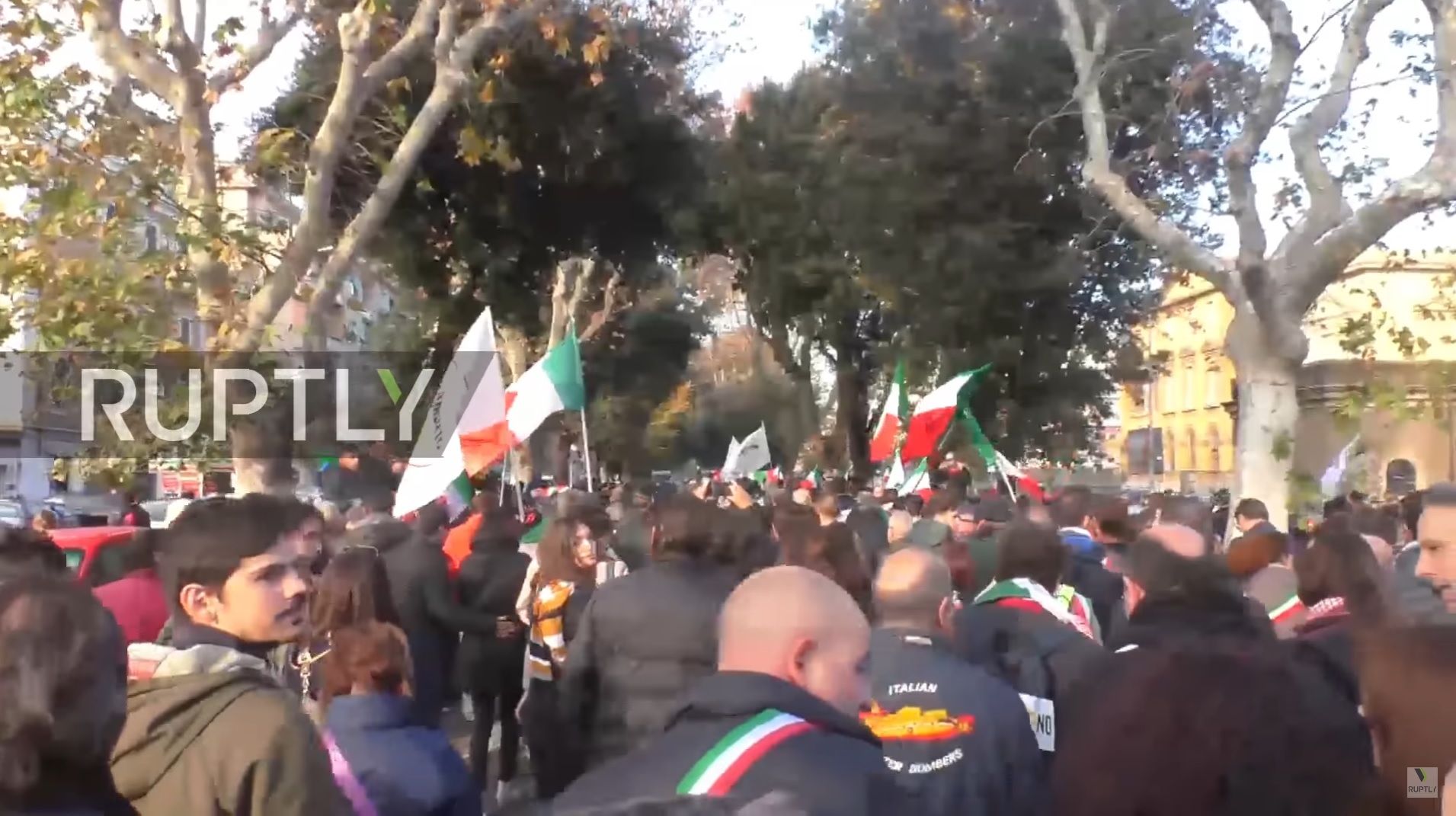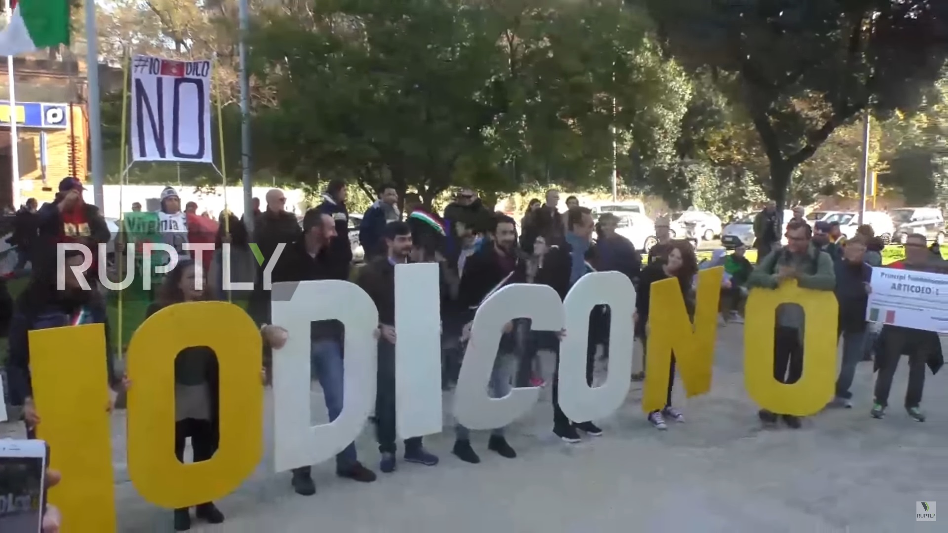 Зазначається, що учасники тримали плакати з написами "Ренці геть" (Маттео Ренці - прем'єр-міністр Італії) і "Люди кажуть ні огидній конституційній реформі".