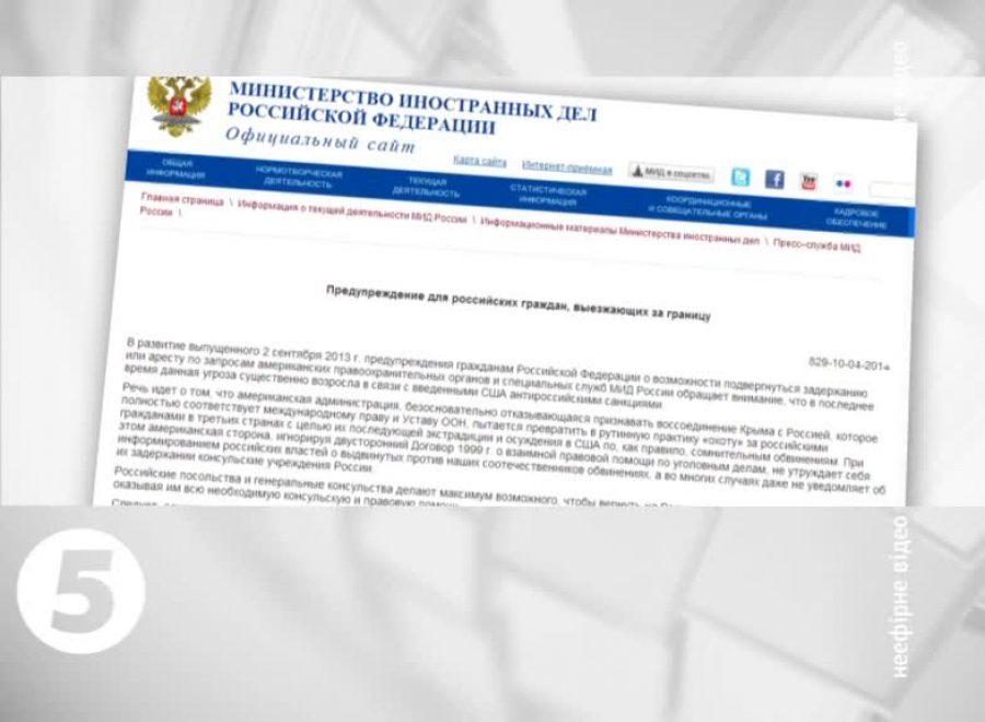 Причиною називають введення США антиросійських санкцій, зокрема – невизнання Сполученими Штатами приєднання Криму до Росії. Яке, за переконанням відомства, повністю відповідає міжнародному праву й статуту ООН. Крім цього, у відомстві Лаврова наголошують: "правосуддя по-американськи відрізняється упередженим ставленням до росіян". Відтак, МЗС країни рекомендує своїм громадянам утриматися від поїздок за кордон.