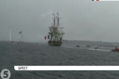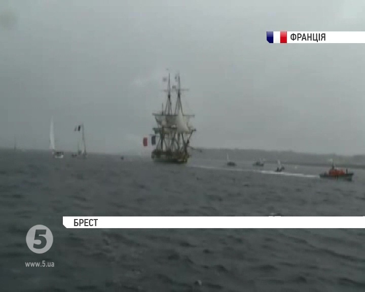 Копія легендарного фрегата "Герміона", на якому генерал Лафайєт здійснив подорож до Сполучених Штатів 1780 року, прибуває до французького міста Брест на міжнародний морський фестиваль вітрильників.