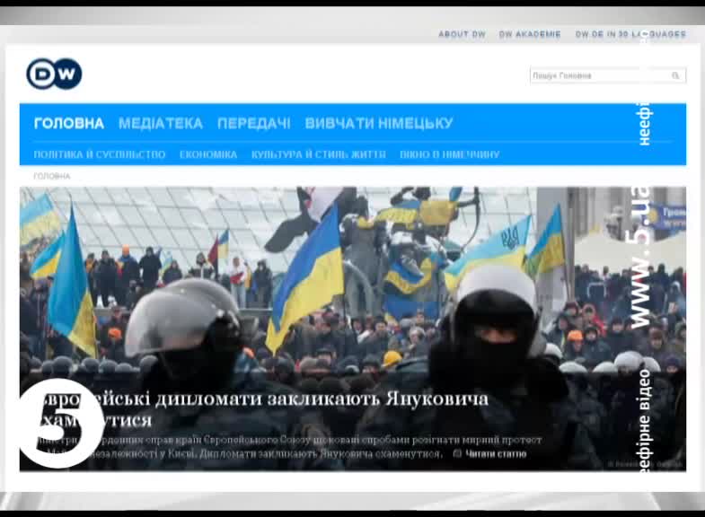 Події навколо Євромайдану - топ-тема міжнародних сайтів. З новин про штурм вночі у центрі Києва починаються повідомлення на веб-сторінках «Євроньюз», «Дойче Веллє», «Шпігель», «Нью-Йорк Таймз», «Гардіан», «Файненшал Таймз» і «Альджазіра».