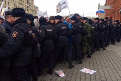 Перед натовпом виступив президент РФ Володимир Путін, який раніше сьогодні заявив про анексію Криму та підписав документ про приєднання його до Росії.