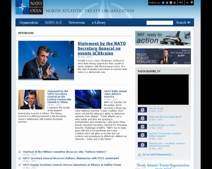 Напередодні реакцію на події в Україні оприлюднив генсек альянсу Андерс фоґ Расмуссен. Він звернувся до сторін конфлікту утримуватися від застосування сили і вирішити розбіжності у демократичний спосіб. Расмуссен також підкреслив, що Україна зараз головує в ОБСЄ, тому офіційний Київ повинен дотримуватися її міжнародних зобов'язань стосовно гарантування свободи зібрань та висловлювань.