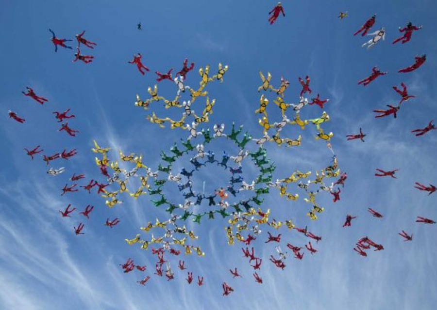 У колективному стрибку брали участь 222 парашутиста з 28 країн. Передбачалося, що група стрибне з висоти 5486 метрів і під час вільного падіння утворить в небі дві фігури.