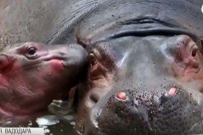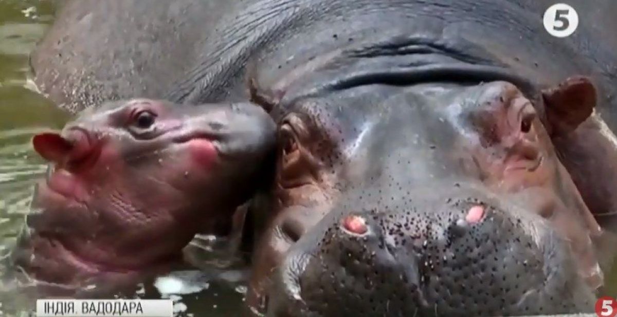 Новонародженого бегемота показали у зоопарку індійського міста Вадодара. Про таке повідомляє "5 канал".