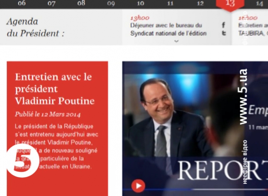 Франсуа Олланд відзначив – референдум у Криму нелегітимний, оскільки відбувається не прозоро та під тиском. Він закликав російського президента докласти всіх зусиль, щоби уникнути анексії Криму, яка є неприйнятною для міжнародної спільноти. Франція вважає, що Росія повинна визнавати та поважати суверенітет та територіальну цілісність України та вивести війська з Криму, поки є можливість уникнути збройного конфлікту.