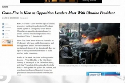 Видовищність протестів не дає їм скотитися з перших шпальт навіть у державах, де зазвичай українськими новинами не надто цікавляться. Пишуть і показують про наслідки протистояння на вулиці Грушевського. про сутички в областях. Обговорюють перемир’я і переговори опозиції з президентом.