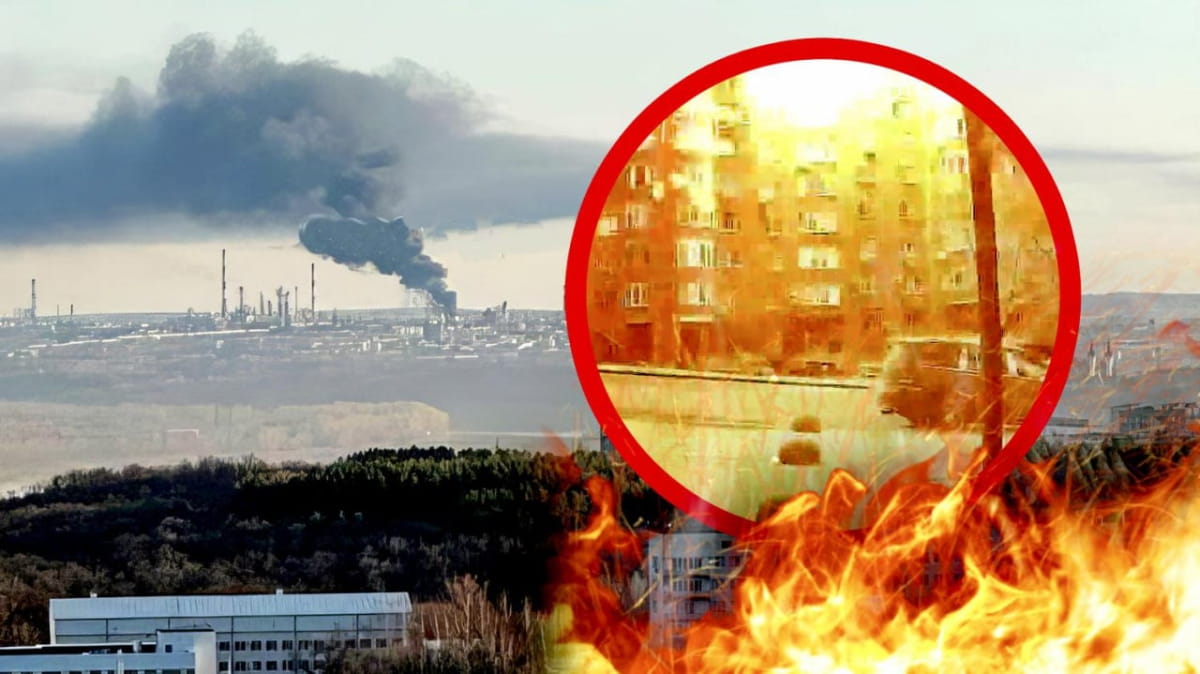 Вибух, але не побутовий. Так палає нафтопереробний завод "Башнефть-новойл" за 1300 кілометрів від кордону з Україною. Над підприємством здіймається стовп густого диму заввишки десятки метрів. Жителі будинків поблизу звітують про наслідки вдалої атаки.