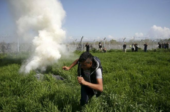 Георгій Кирітсіс, речник уряду греції з питань міграції, заявив: "Масове застосування сльозогінного газу, шумових гранат і сльозогінних куль в усіх без винятку, в жінок і дітей, протягом кількох годин - це дуже прикра і страшенно небезпечна практика. Віримо, що влада Македонії це розуміє... Також ми повинні звернутися і до мігрантів, які не повинні вірити брехні і порушувати закон. Ви маєте розуміти - кордони закриті".