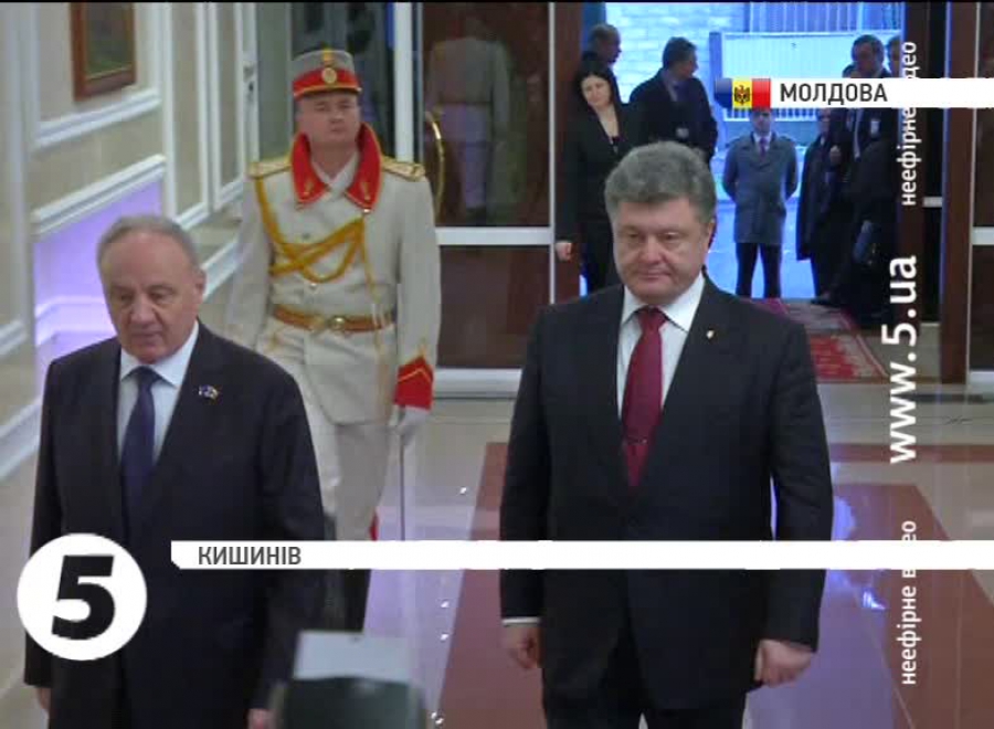 У президентському палаці столиці Молдови Петра Порошенка та Броніслава Коморовського зустрічав Ніколає Тімофті. Президентський оркестр виконав гімн України. Сьогодні ж запланована зустріч Петра Порошенка з місцевою українською діаспорою.