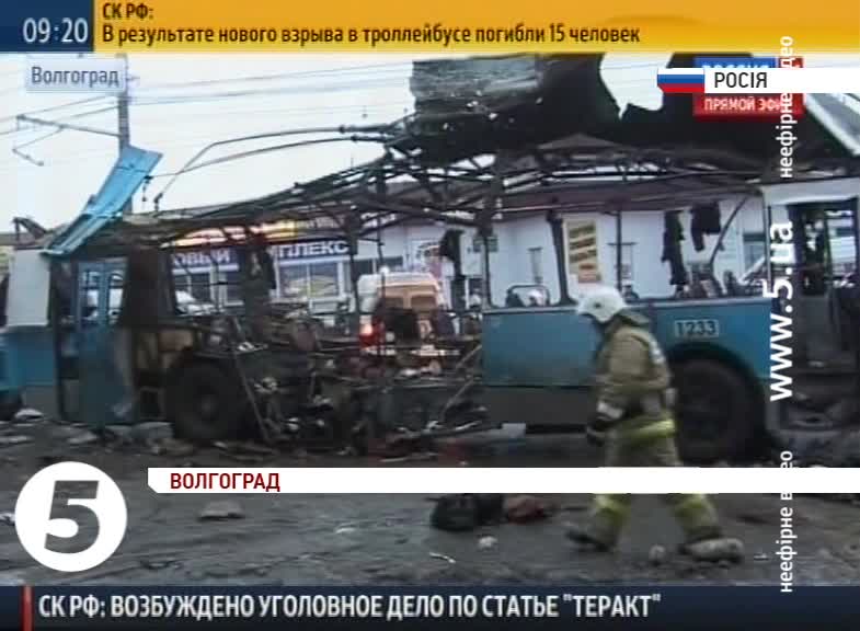 Вибуховий пристрій, начинений металевою шрапнеллю, розірвався в тролейбусі в ранкову годину пік. Тролейбус не доїхав до зупинки півсотні метрів. Від нього - майже нічого не залишилося. Порушено кримінальну справу за статтями «теракт» та «незаконний обіг зброї». Триває розслідування і на місці попереднього теракту – на вокзалі. Кількість загиблих сягнула 17-ти. Усього від вибуху на волгоградському вокзалі постраждали понад півсотні людей. У шпиталях залишаються понад 40 людей. У вкрай тяжкому стані – шестеро. Відучора в місті оголошено про високий рівень терористичної небезпеки.