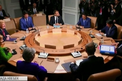 Нагадаємо, 44-й саміт країн "Великої сімки" стартував напередодні в канадському місті Ла-Мальбе. Лідери найбільш індустріально розвинених держав світу зібралися в готелі "Фермон Ле Манор Рішельє". Обговорювали питання повернення Росії до клубу, американські мита на імпорт сталі та алюмінію з ЄС і майбутню зустріч Дональда Трампа з Кім Чен Ином у Сінгапурі.