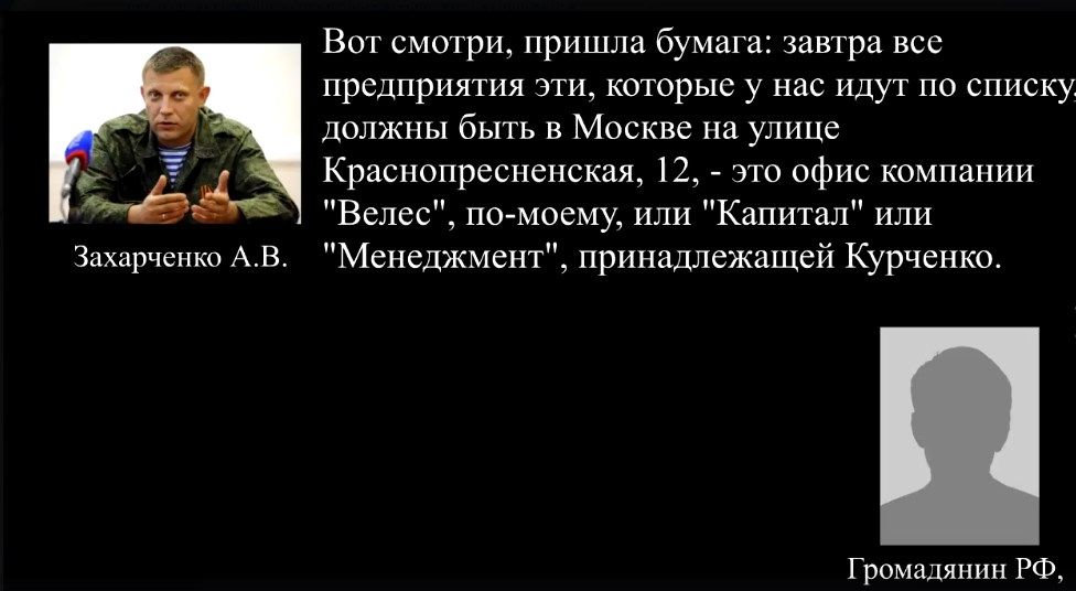Як повідомляє прес-служба СБУ, розмова доводить, що більшість найпривабливіших українських економічних активів на тимчасово окупованій території Донеччини російські куратори планують передати структурам олігарха Сергія Курченка, який втік до Росії.