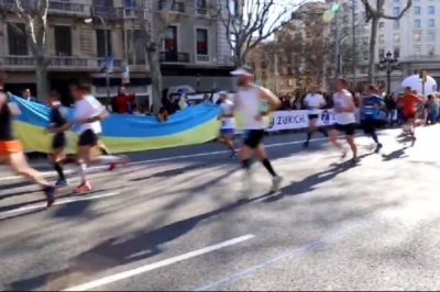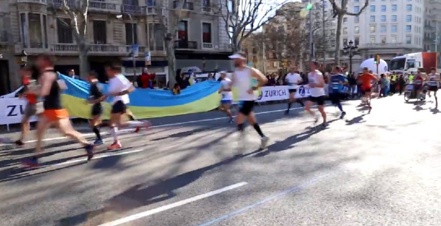 Більшість учасників забігу охоче погодилася прикрасити такою символікою свій одяг – на знак підтримки народу України. А вздовж маршруту руху марафонців українські активісти вивісили десятиметровий синьо-жовтий прапор. Учасники акції скандували англійською та іспанською слова підтримки спортсменам та гасла на кшталт "Спорту – так, війні – ні", "Мир Україні" та іншими. Атлети відповідали вигуками "Браво, Україна" та "Ми з вами".