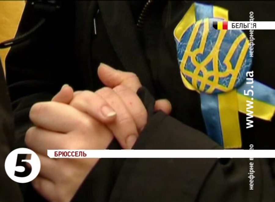 Люди тримали українські прапори і транспаранти з засудженням дій президента Януковича та вимогами суворих санкцій щодо можновладців, причетних до вбивств демонстрантів на вулицях Києва. Виконували український гімн, а пам’ять загиблих - вшанували спільною молитвою. Винними у драматичному загостренні ситуації в середмісті української столиці учасники акції вважають представників української влади. І наполягають, щоби Європа відреагувала якнайжорсткіше.