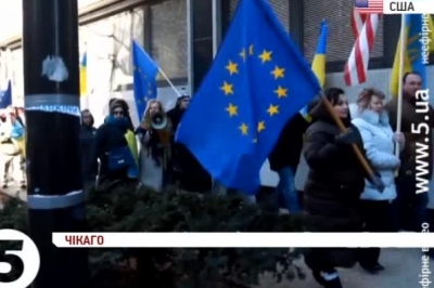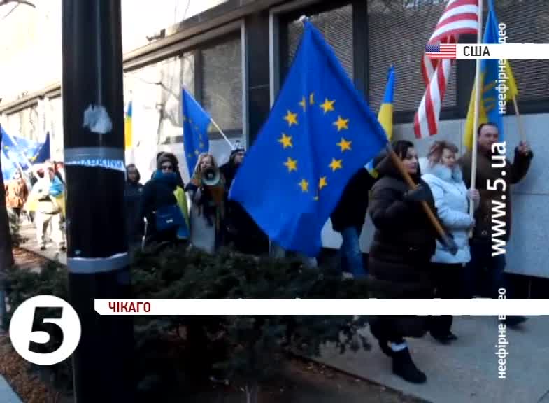 Вони тримали в руках прапори України, Євросоюзу та червоно-чорні прапори УПА і скандували Україна - це Європа та разом до Європи. Біля будівлі консульства України в Чикаго пройшов мітинг. Присутні закликали президента Януковича дотриматися обіцянки і підписати Угоду про асоціацію з ЄС.